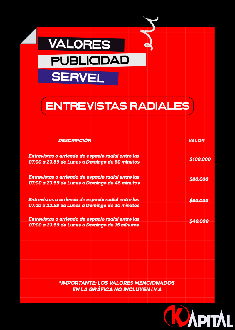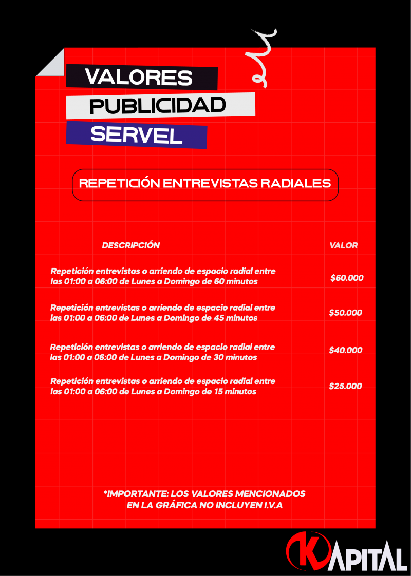 Tarifas Servel 2025